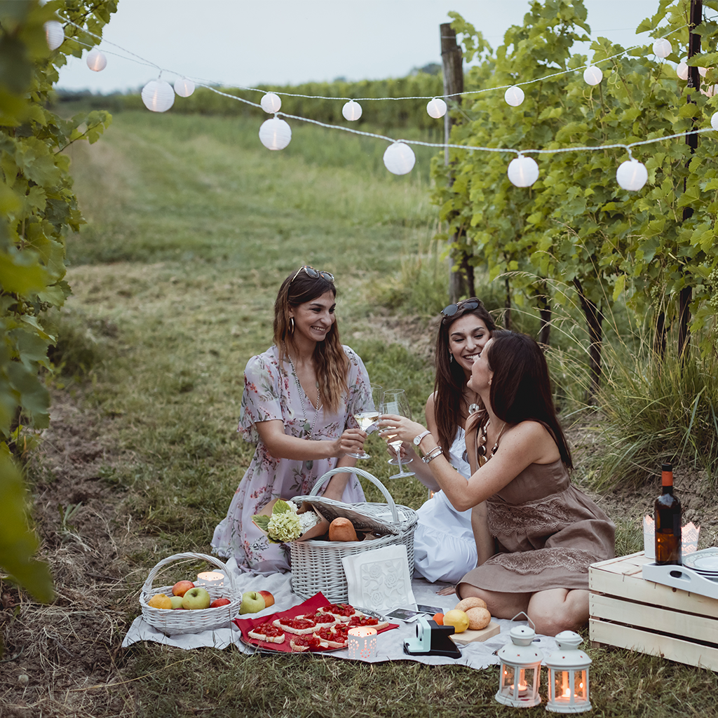 Un momento unico immersi nella suggestione dei vigneti al calar del sole: seduti tra i filari, gli ospiti potranno degustare una selezione di prodotti tipici locali accompagnati da un calice (o una bottiglia) del nostro vino biologico, frutto della produzione aziendale.